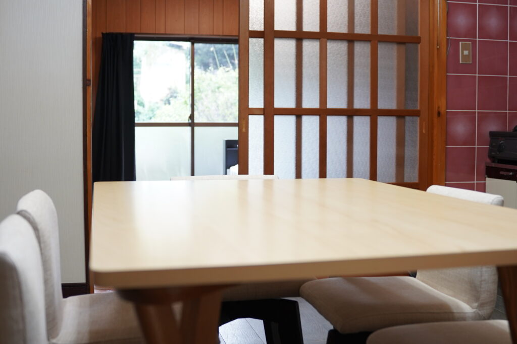 ガスコンロがあり、自炊もできる嬉しい充実のダイニングキッチンとなっております。長期の滞在の方でも安心してご利用いただけます。